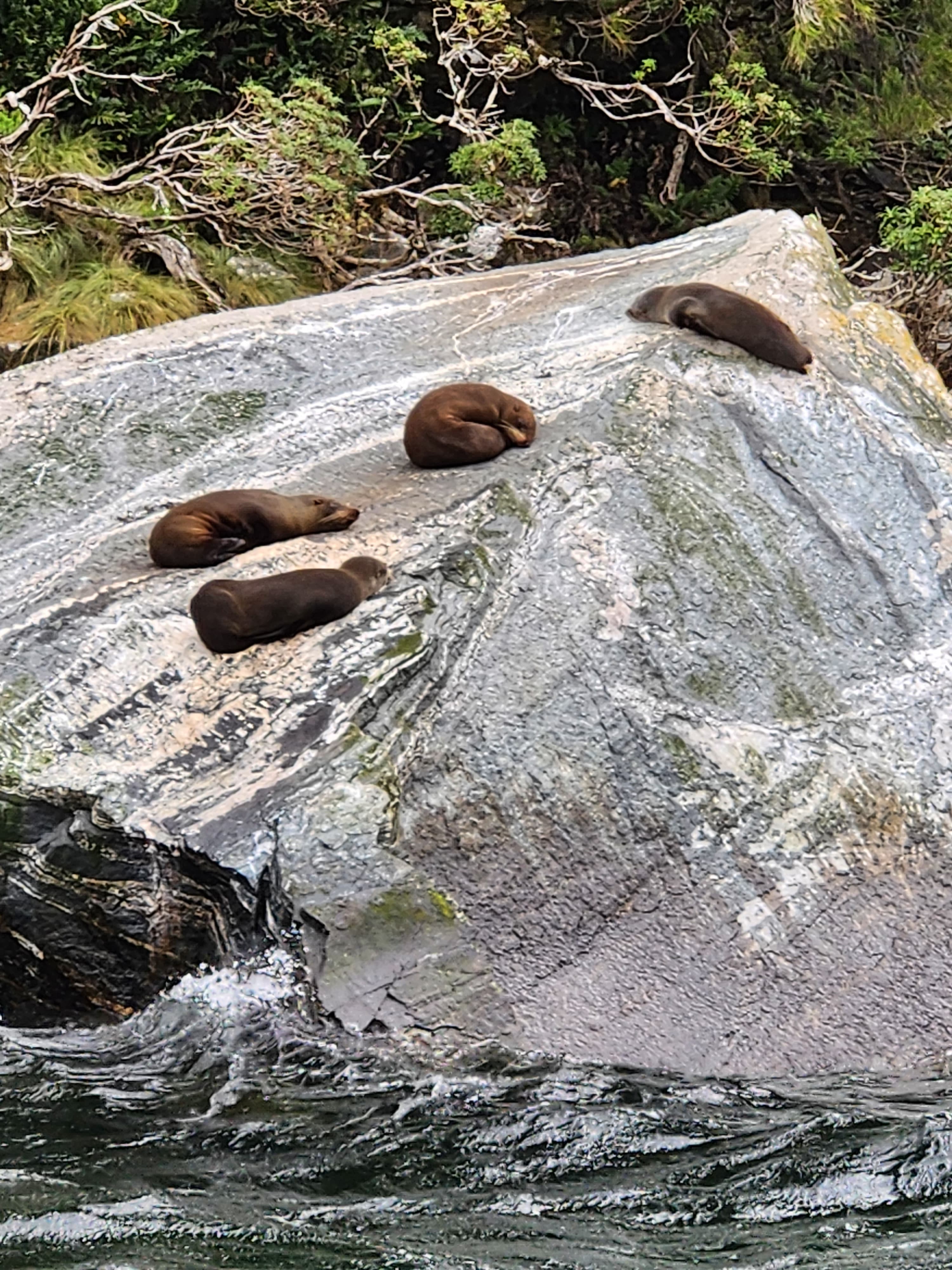 Friday was one of the highlights of our whole trip and something we both had missed out on previous visits to NZ - Milford Sound. After another spectacular drive, we arrived in Milford Sound where we boarded our boat for a 2 hour cruise around the fiord. We were pretty lucky with the weather as apparently it rains 2/3 of the time there, but we had a beautiful sunny day. It was awesome getting up close to the massive waterfalls and seeing fur seals chilling on the rocks.